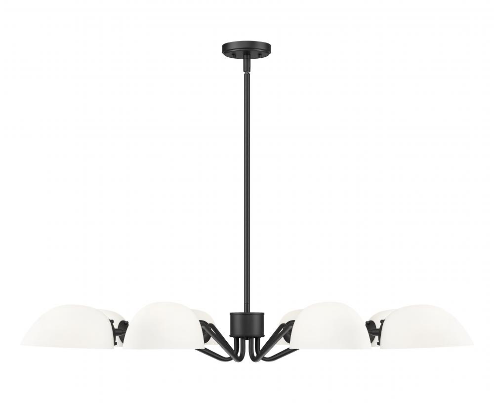 Enjoy the definition and depth of a timeless matte black finish on this modern eight-light chandelier. Its gently curved arms and domed opal glass shades cast inviting illumination, with the shades easily positioned to cast up or down lighting as it best suits your needs. This fixture is the perfect choice for a family living or dining space, and can be used in multiples to create cohesion across open concept homes.
