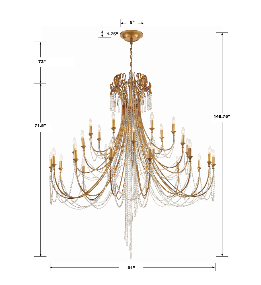 The Arcadia collection features a simple, transitional metal framework that is elegantly dressed with a beautiful crystal draping.