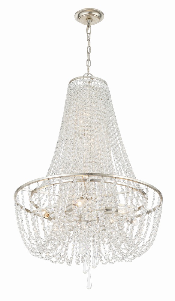 The Arcadia collection features a simple, transitional metal framework that is elegantly dressed with a beautiful crystal draping.