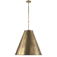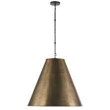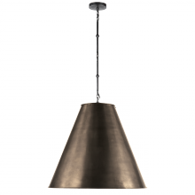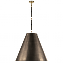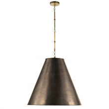 Goodman Large Hanging Lamp in Bronze with Linen Shade