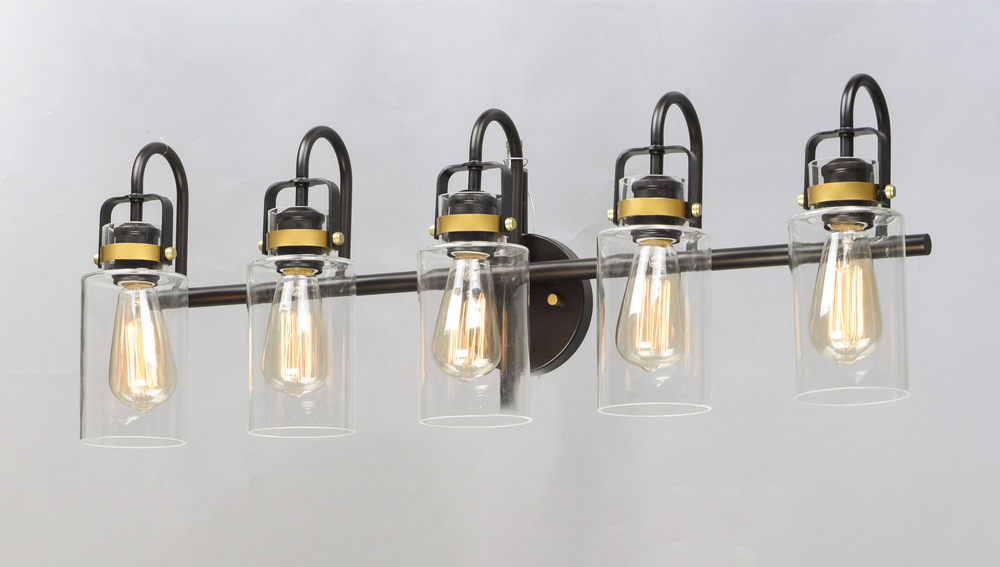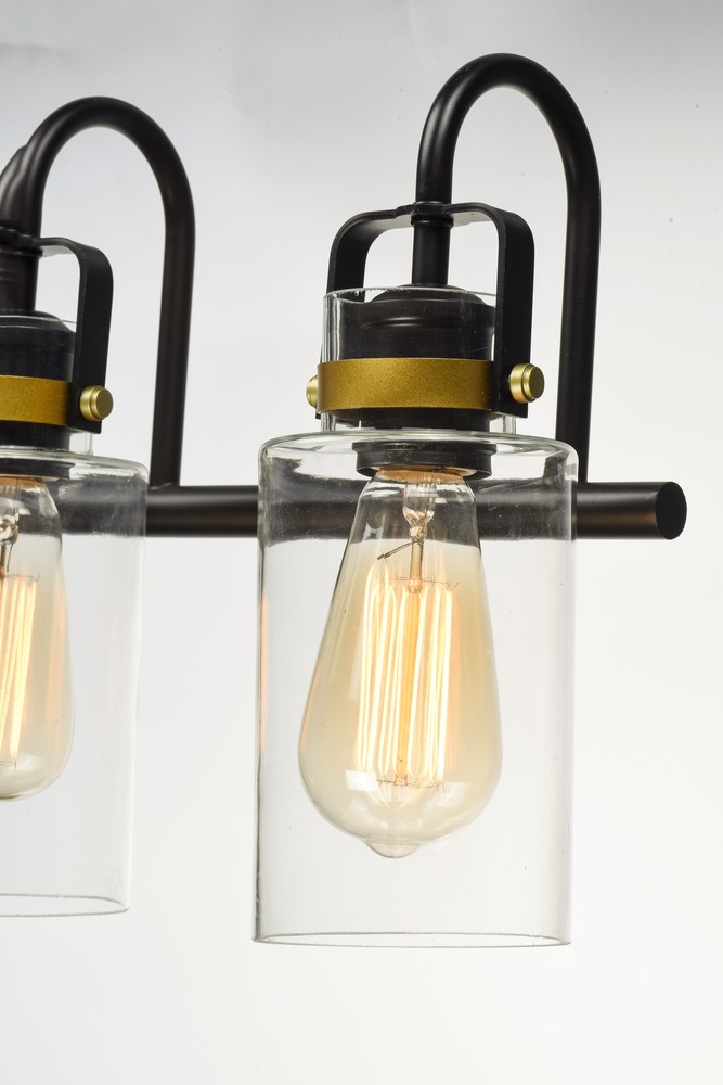 Modern farmhouse design requires vintage looks with an updated style. This collection fits this definition with minimalistic styled frames of Bronze with Gold accents that cradle Clear mason jar shaped glass. Add vintage bulbs for farmhouse appeal or tubul