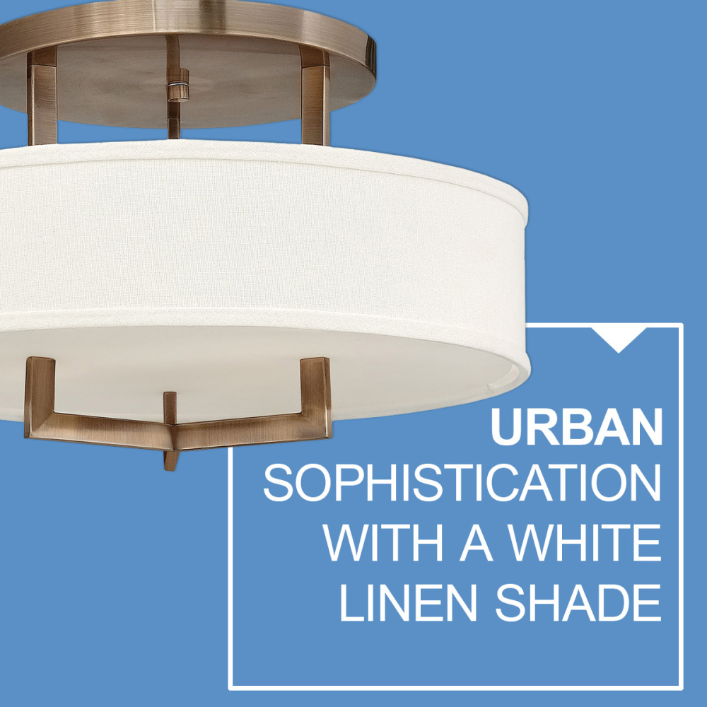 Hampton is a modern transitional design, offering the ultimate in urban sophistication. The minimal, rectangular frame is softened by a contemporary off-white linen drum shade.