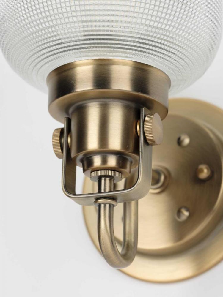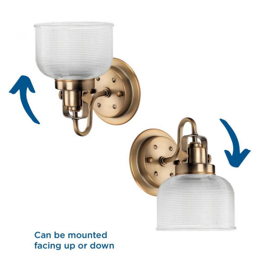 Ideal for a bathroom, hall, or foyer;Perfect for coastal, farmhouse, transitional, and vintage electric style settings;Golden vintage brass finish;Stunning clear double prismatic glass shade;Mount the light fixture facing up or down;Use 1 medium base bulb