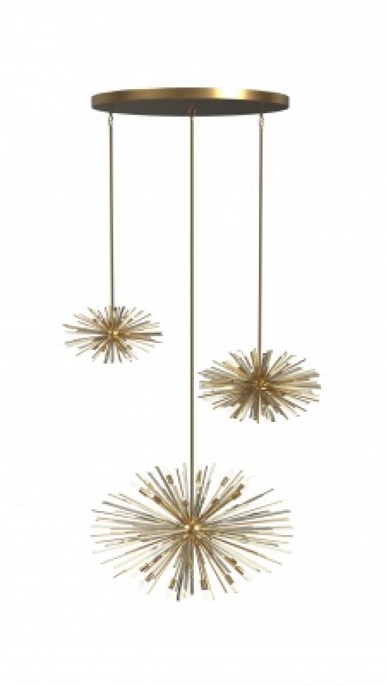 Inspired by the iconic Sputnik design, the Palisades Ave. Collection showcases a dynamic arrangement of varying-sized spokes radiating from a central spear base. This striking fixture is beautifully accented with a mix of glass, metal rods, and glowing bulbs, creating a captivating play of light and form that adds bold sophistication to any space.
