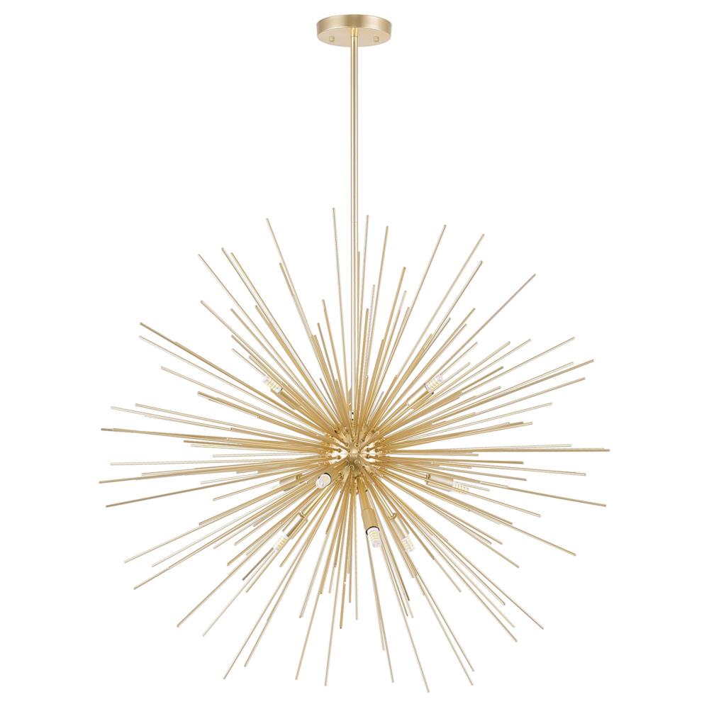 The Savannah 9 Light Chandelier in Gold Leaf Finish has the perfect golden touch to give your home a luxe update. This visually stunning luminaire features shiny spokes interspersed with nine light sources that cast dazzling arrays of light and shadow. Let