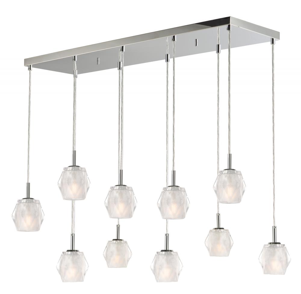 Heavy faceted glass fonts are lined with Borosilicate that sparkles while illuminated by the LED G9 lamps which are included. Polished Chrome metal, contribute to the clean and crisp contemporary design.