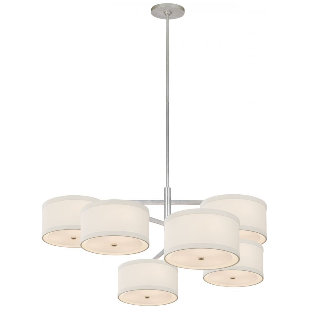 Walker XL Offset Chandelier in Burnished Silver Leaf with Linen Shades