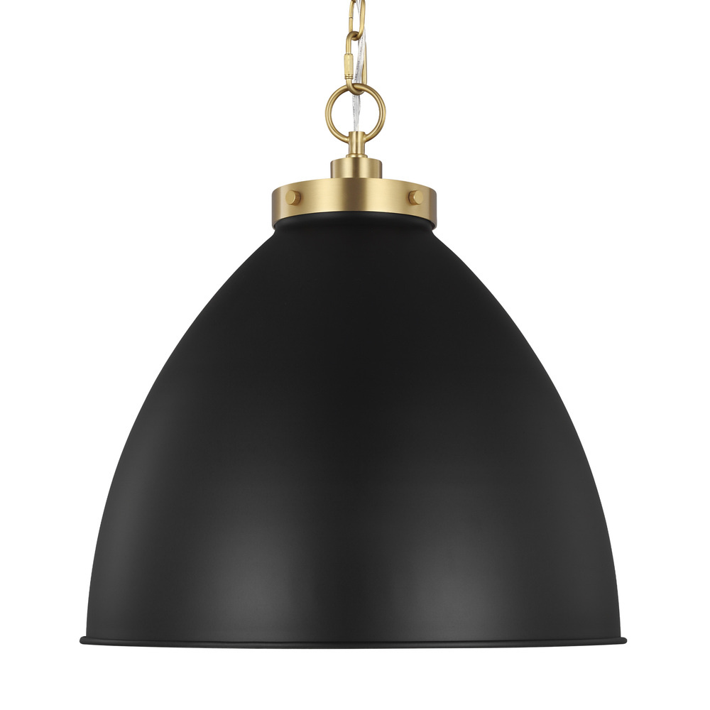 Inspired by various classic utility silhouettes - from factory lighting to barn sconces - capped by contrasting metal hardware. Each shade of the Wellfleet series by Chapman & Myers is available multiple sizes of 3 versatile profiles; either a flat farm dome, a traditional factory dome, or tapered cone. The shades are available with either a black or white finish and are paired with either a burnished brass or polished nickel collar, chain and canopy.