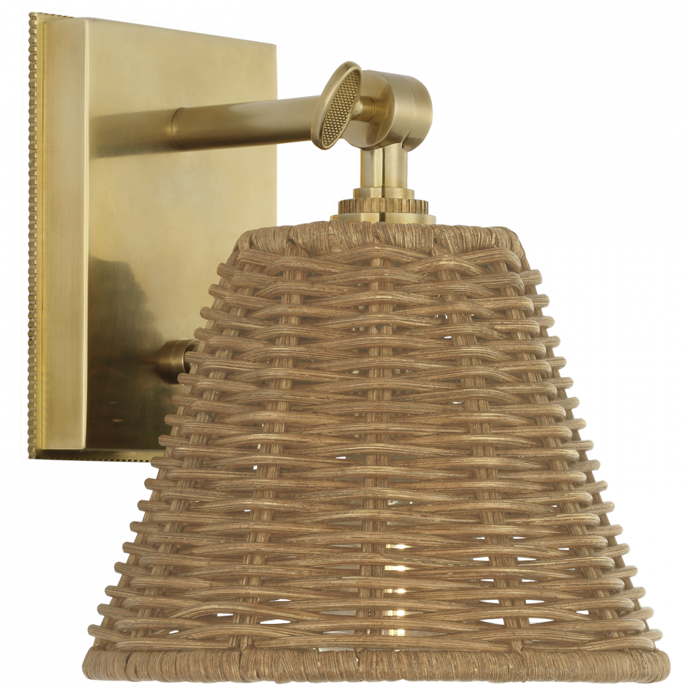Wimberley Bedside Wall Light in Soft Brass with Natural Wicker Shade