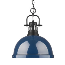 Yep by Golden Lighting Duncan 1-light 14in Chain Hung Pendant in Matte Black and White shade