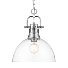 Bring traditional elegance into your home with the Yep by Golden Lighting Duncan 1-light 14in Chain Hung Pendant. Featuring a metal shade and a matte black frame, it creates a welcoming atmosphere. This fixture highlights a classic white shade that offers a smooth, reflective surface with a high-gloss sheen, embodying the essence of timeless utility style. The matte black finish imparts an enduring sophistication, allowing it to seamlessly complement a variety of decor styles. Perfect for kitchens, dining rooms, or entryways, this damp location rated pendant is designed for semi-enclosed spaces. The fixture is sloped-ceiling compatible and offers an adjustable height from 19.875" to 91.875", ensuring easy installation customized to your space. Overall Dimensions: 14"W x 16.88"H x 14"D. Requires 1 E26 Medium base bulb (not included) with a maximum wattage of 100. Enhance your home with this pendant light that combines vintage charm with modern design, creating an inviting and stylish environment.